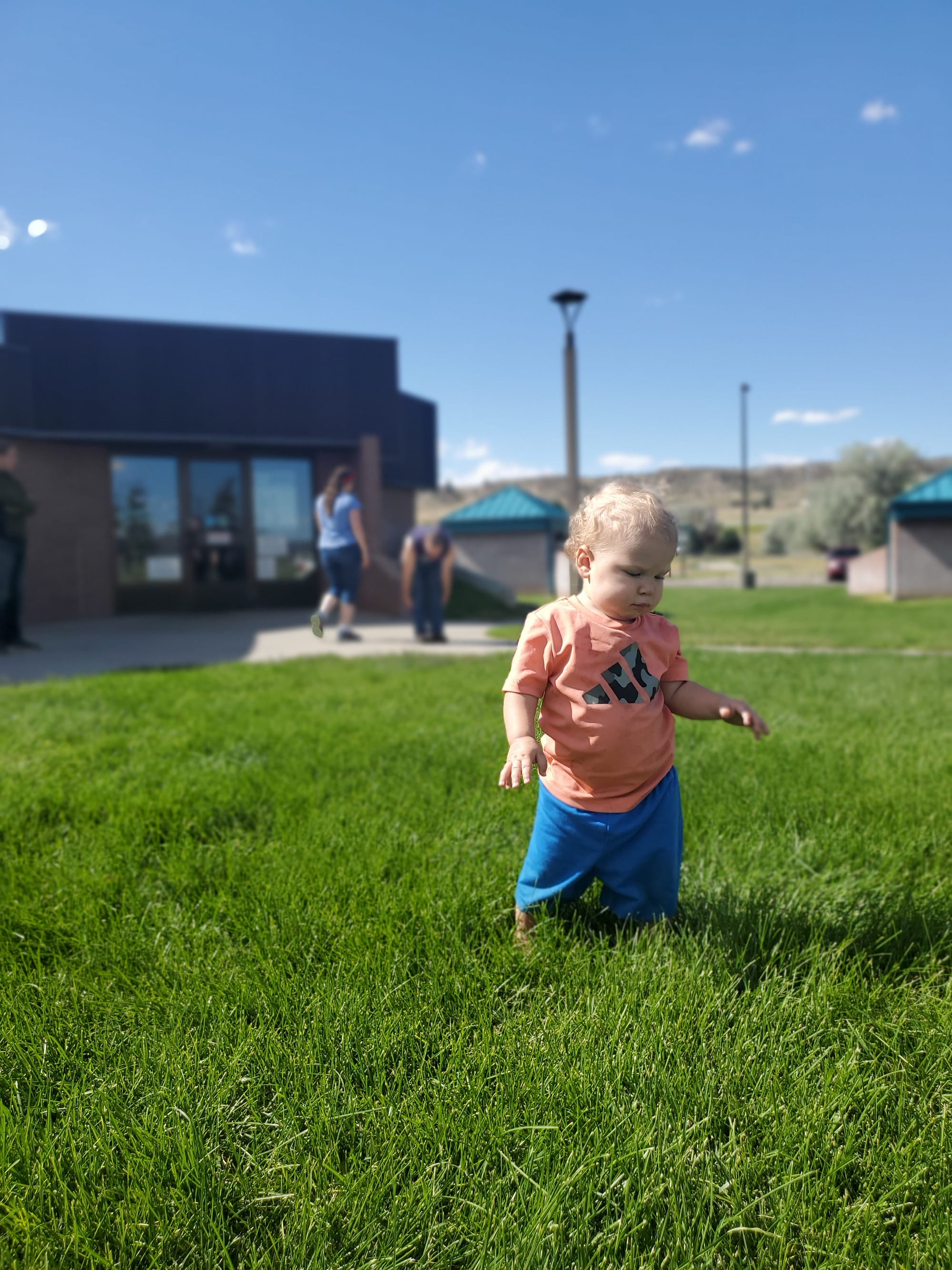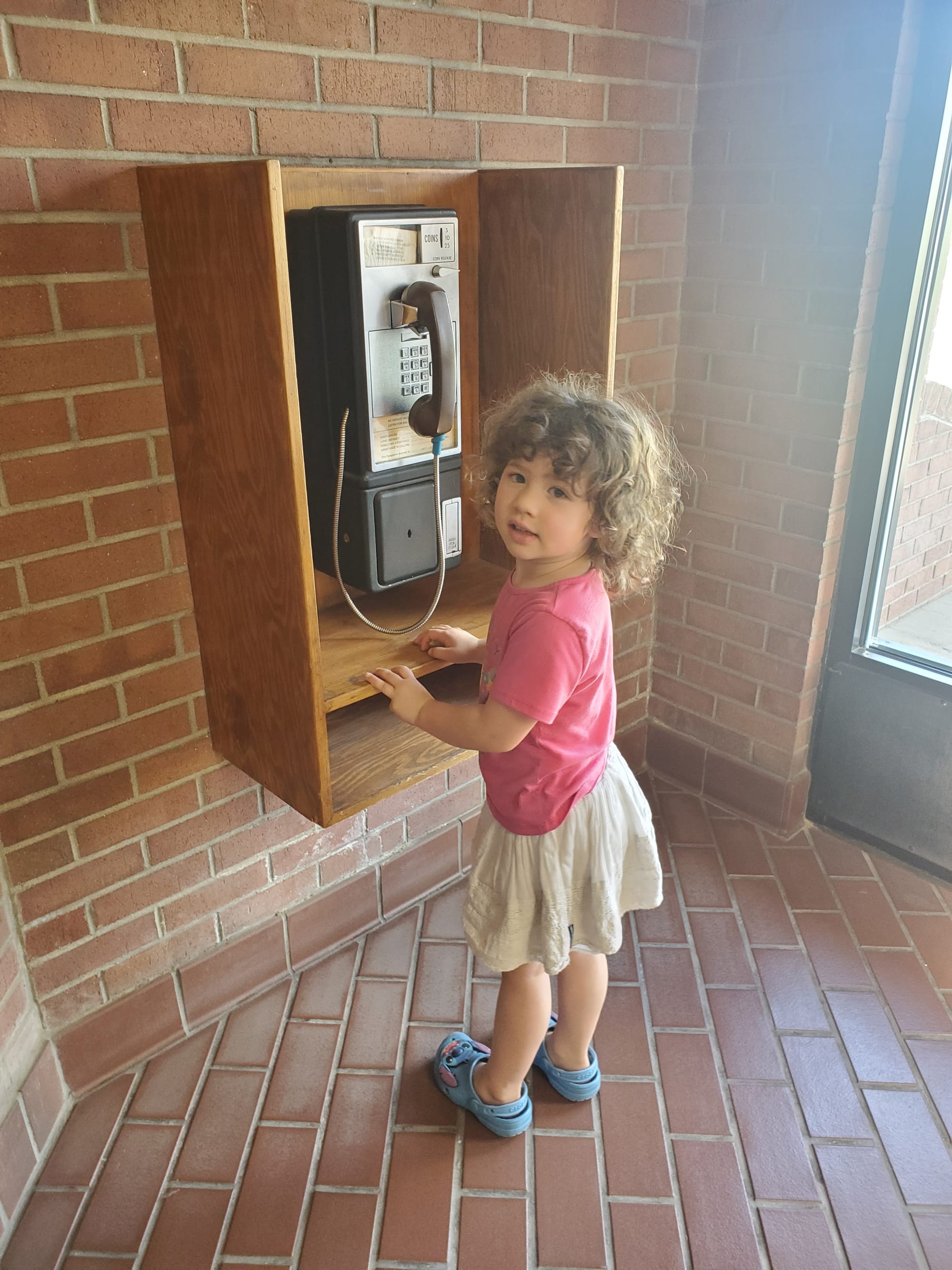 I remember this was the first time Völund had felt real grass. Our yard in Texas was nothing but dirt and tangles of crunchy dead grass. When his bare feet touched the green he didn't know what to think and became distressed! Oh and this payphone is still functioning! They were scarce in my childhood and are all but extinct in Mai's and Völunds.