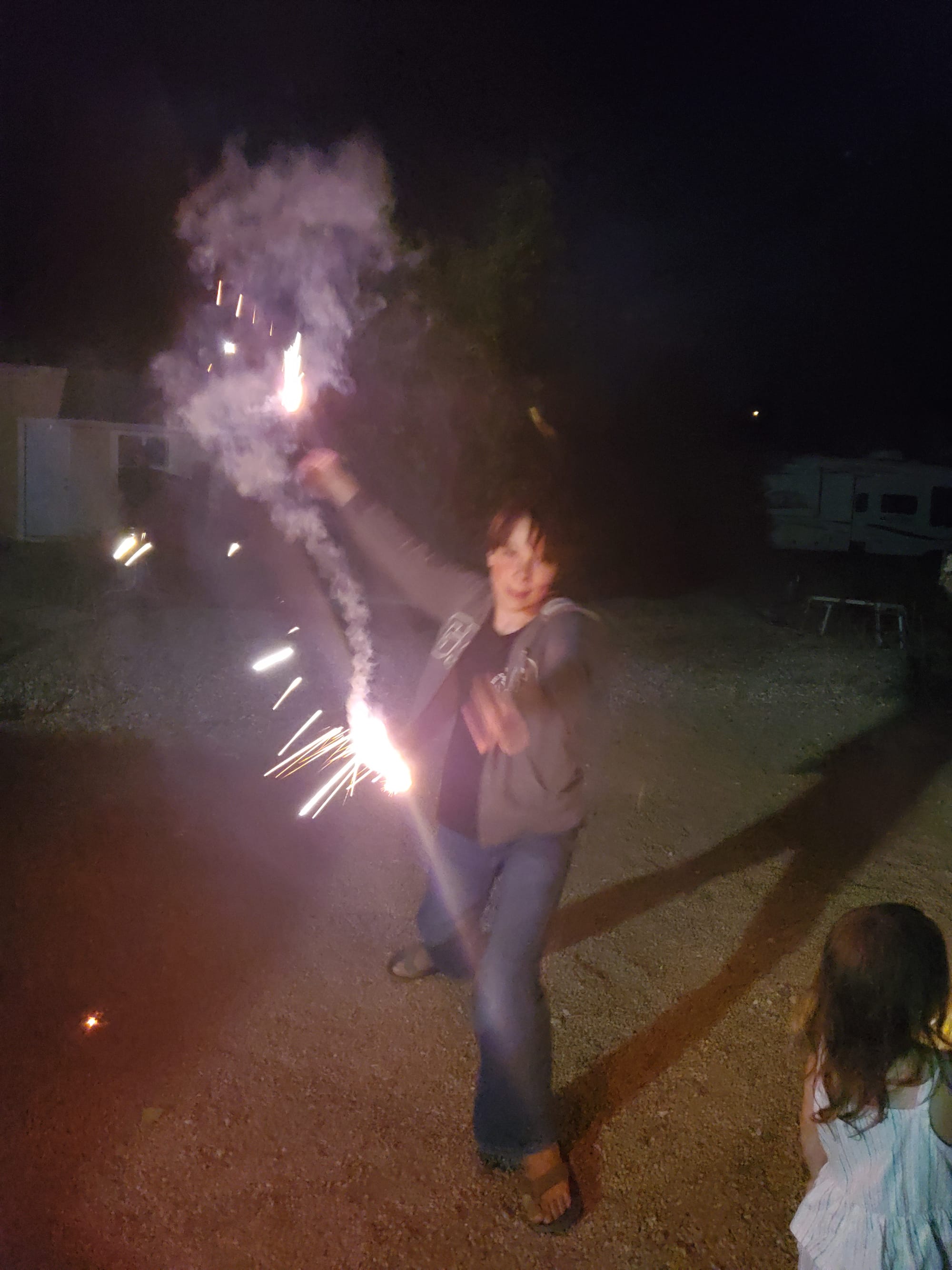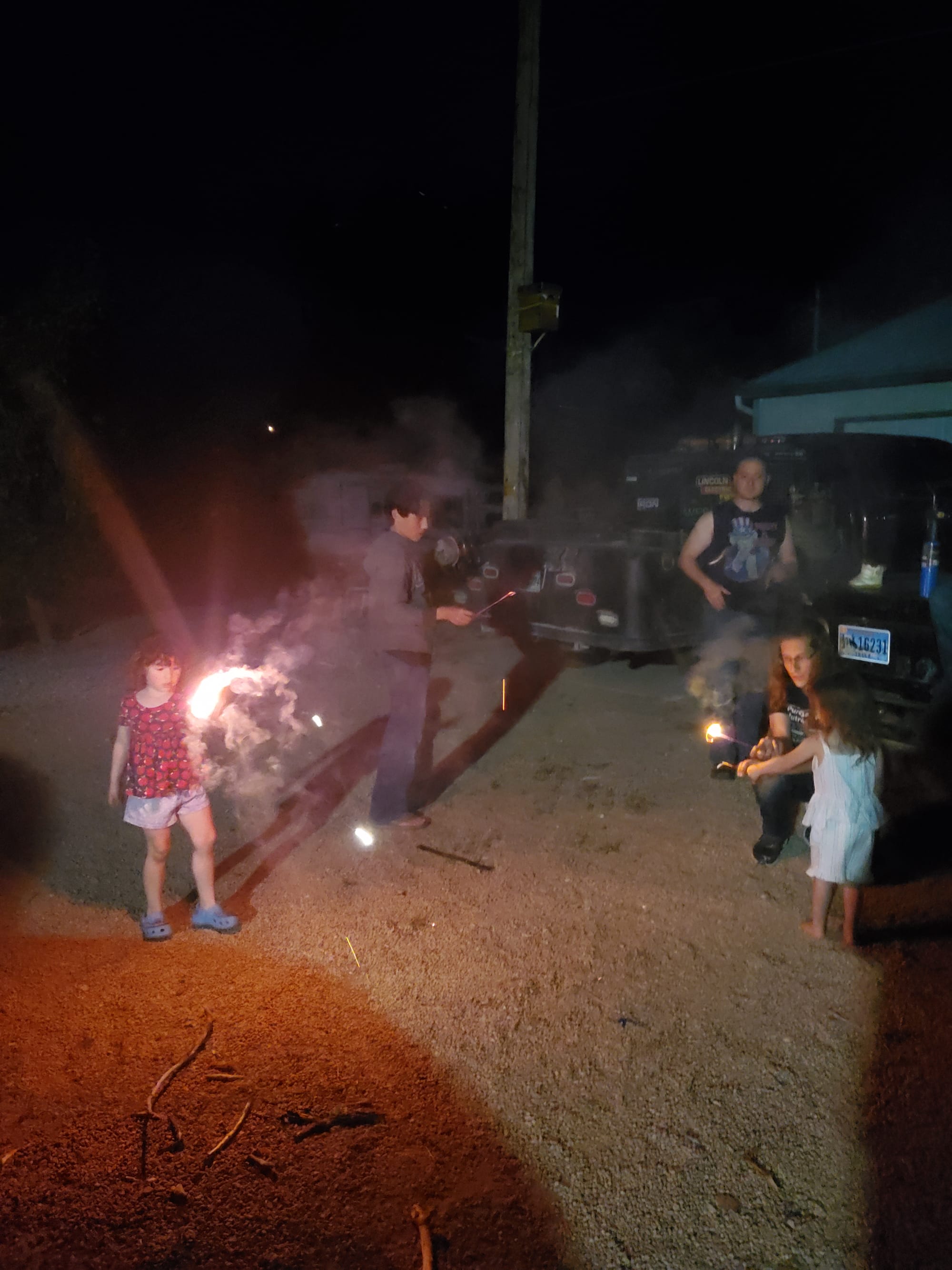 July 4th we lit off fireworks and danced with sparklers. Jubal tried some fiery ninja type moves. The girls were a little nervous but excited all the same.