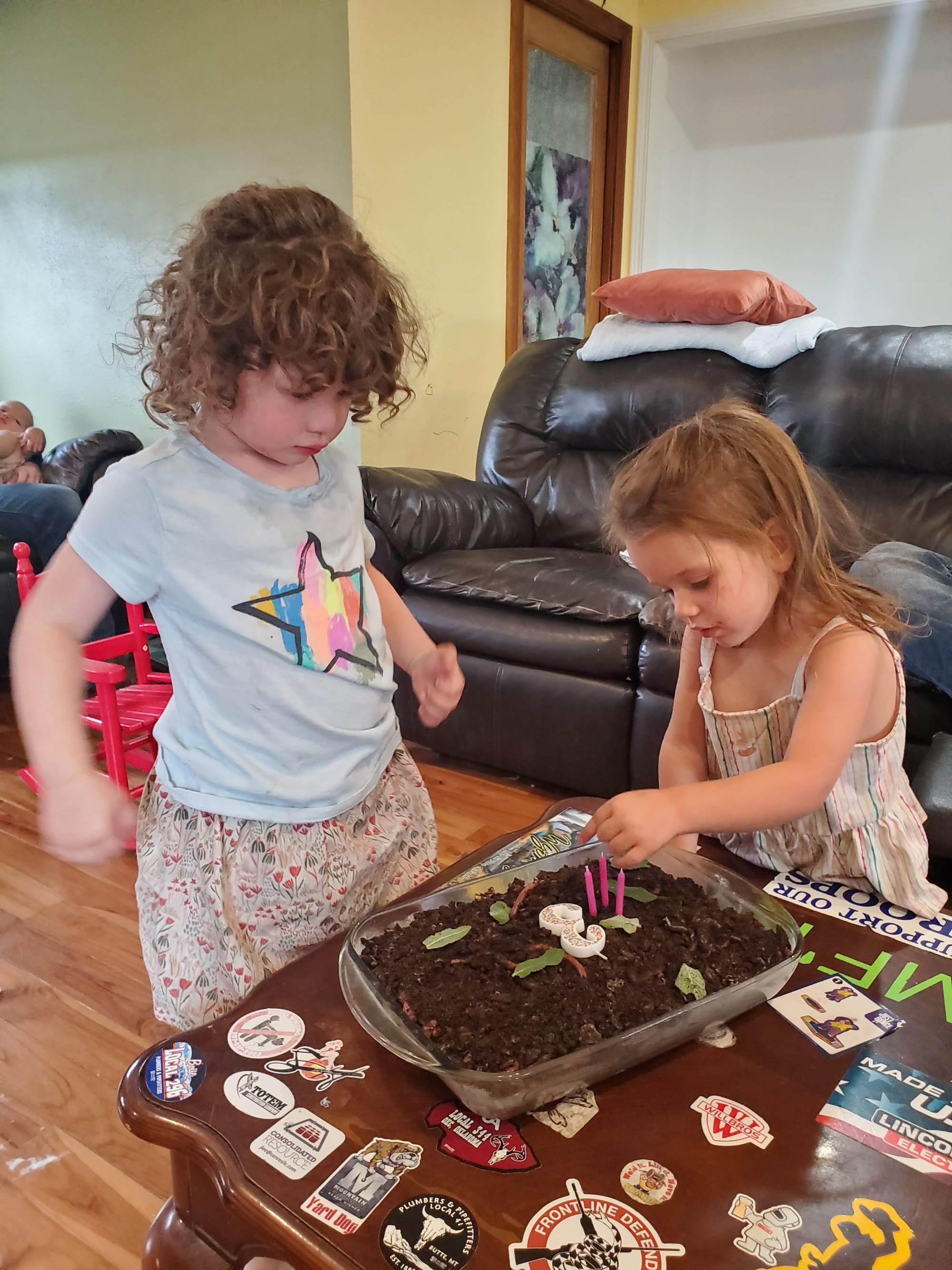 Lennah turned three years old. Grammy and Aunt Savannah made a dirt cake complete with worms... Lennah loves her daddy's worm farm so we thought it would be a hit. The gummy worms were too realistic, though, and we were hard pressed to get the kids to eat it! 🤣
