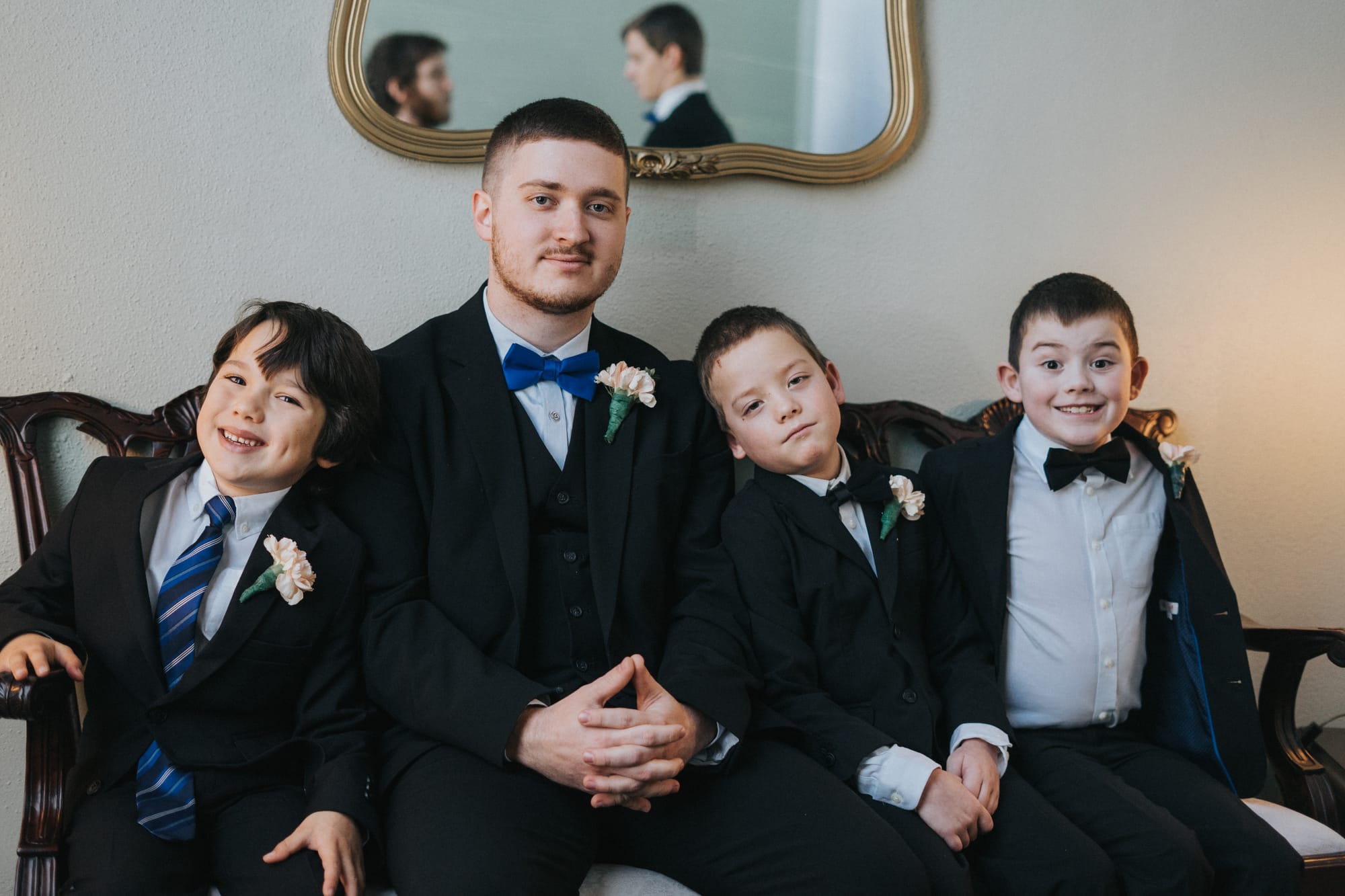 Best Man: London Dearrington. Groomsmen: Matthew Cassady, Dyllan Brown, and Steven Triplett. Ring "Bears": Oliver Bargett and Jubal Harris. Flower Girl Escort: Carson Bargett.